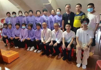 藥物,也無微不至地照顧著弟子後學的用餐和行動,特別是上下樓梯時,都是靠法嬋總道師、王亞敏前賢和陳角花前賢背上背下。弟子後學十分感恩道親們