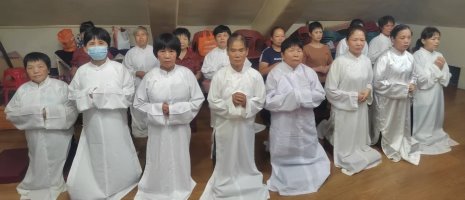 六、在當今天災人禍戰爭災劫頻傳之際,惟有求得真天命大道才能躲災避劫,獲得重生。參與法會的弟子們皆立願要尊師重道,廣度有緣,遵從師命守佛規,祈願兩岸融