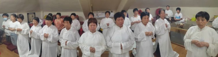 六、在當今天災人禍戰爭災劫頻傳之際,惟有求得真天命大道才能躲災避劫,獲得重生。參與法會的弟子們皆立願要尊師重道,廣度有緣,遵從師命守佛規,祈願兩岸融